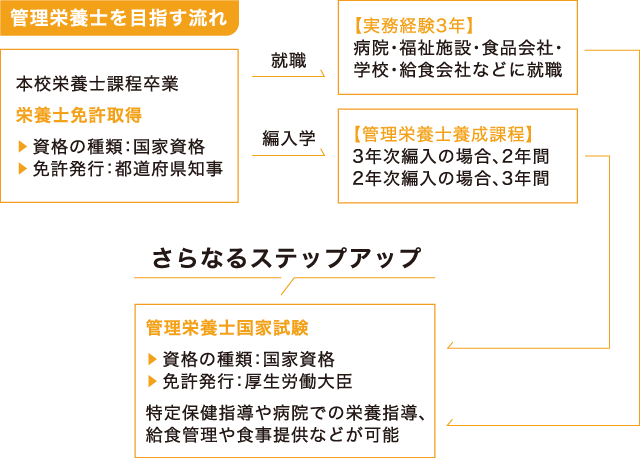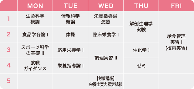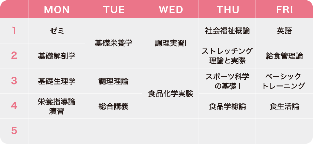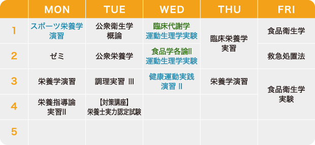 「病理学」「臨床代謝学」など医学的科目を履修し、管理栄養士に近い知識を修得します。